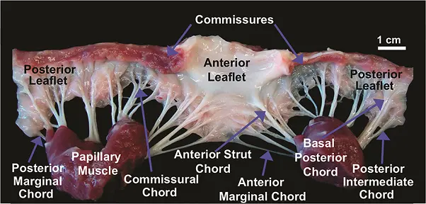 最后来一张二尖瓣人体实物解剖图,对照学习,感受心脏瓣膜解剖之精细,功能之完美!