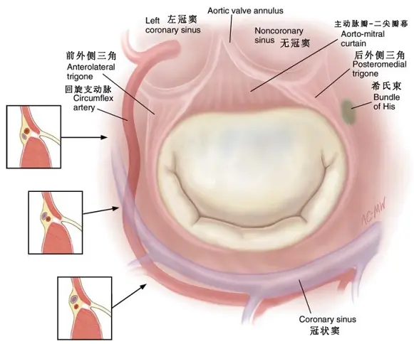 术中容易损伤的4个毗邻瓣环的解剖结构(Fig.6):